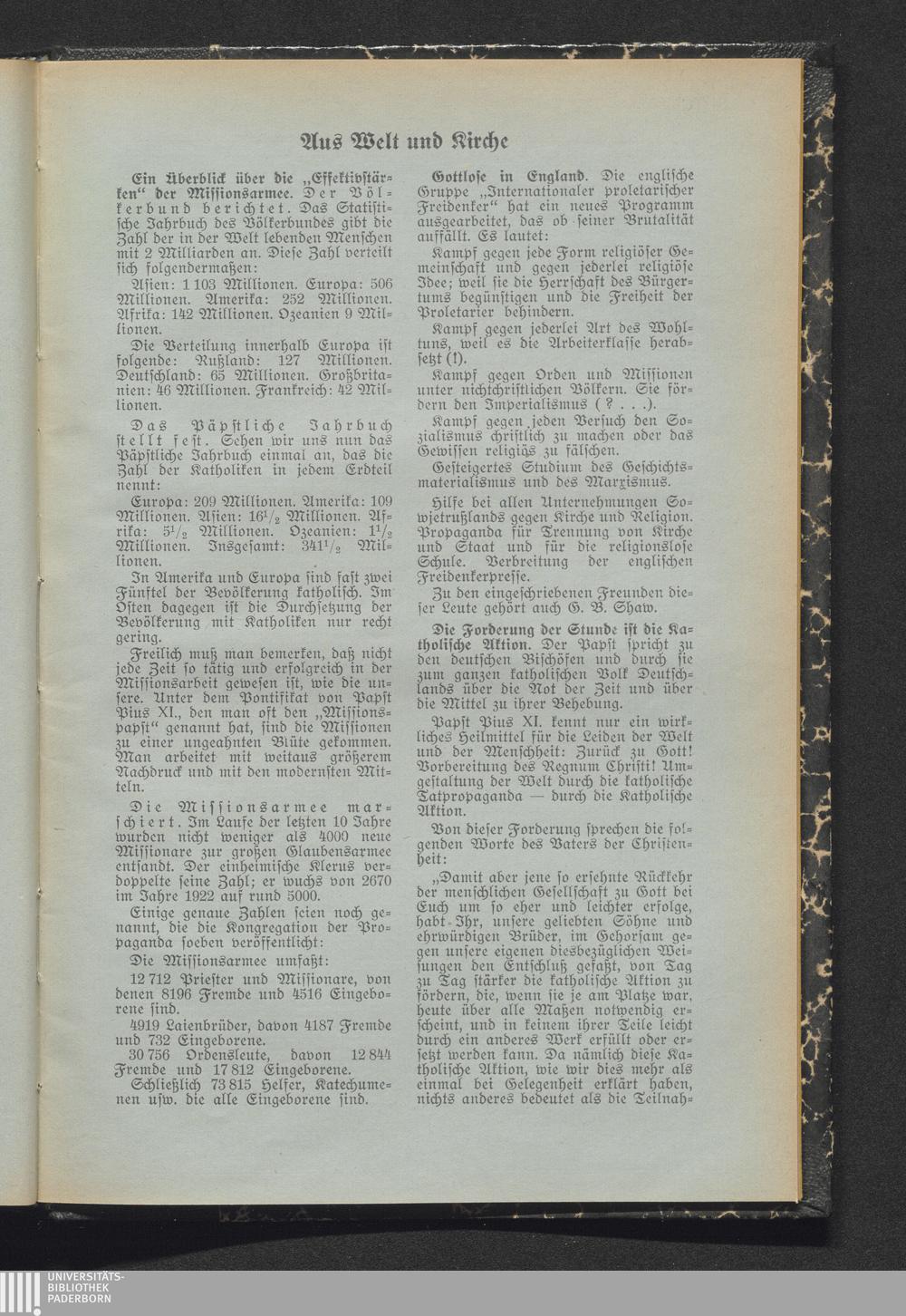 Aus Welt und Kirche
