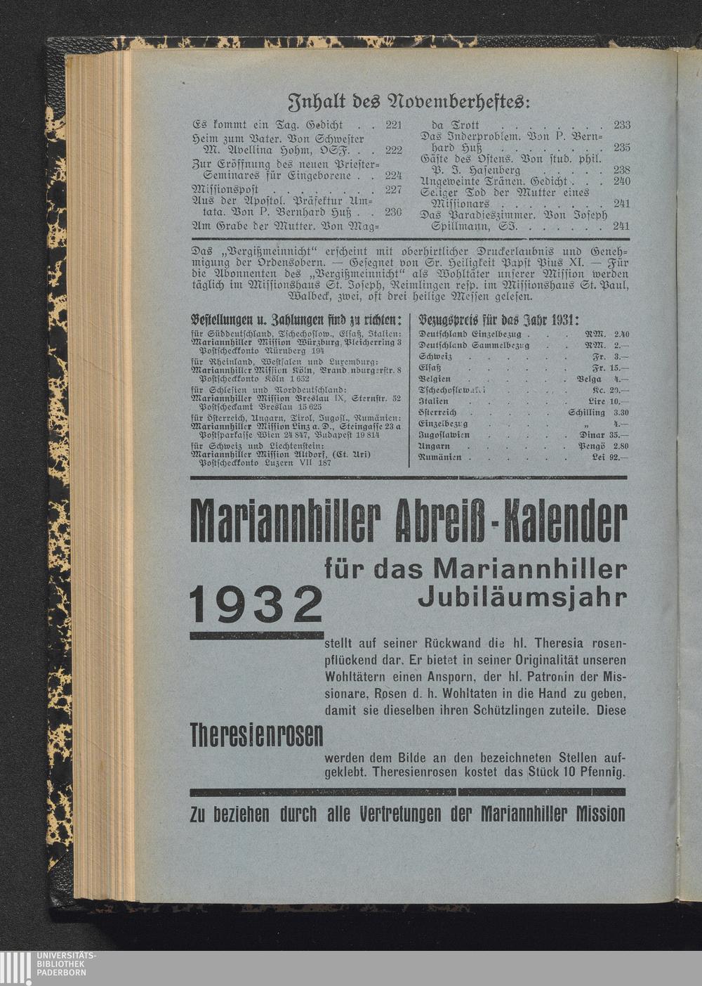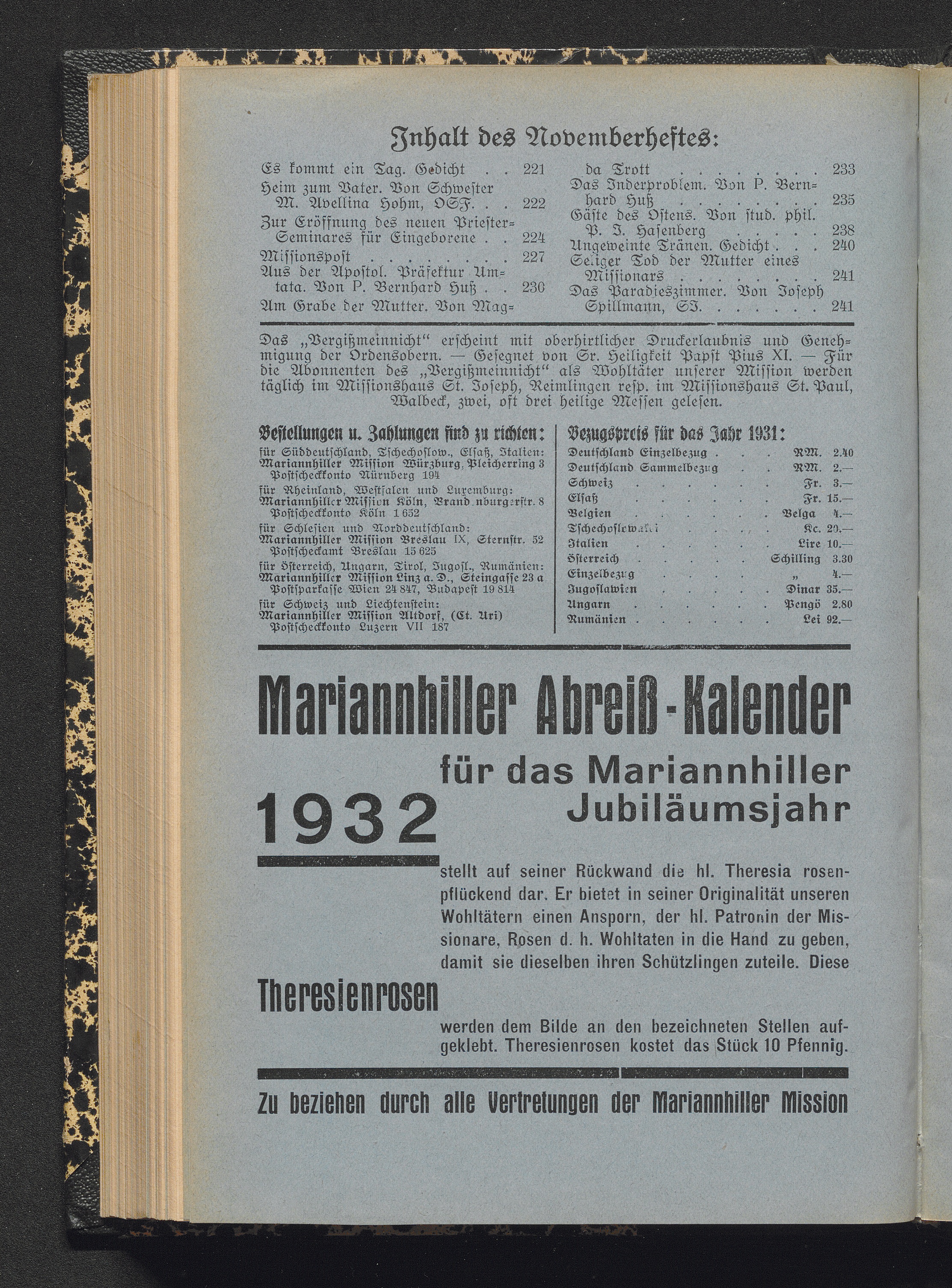Jnhalt des Novemberheftes: