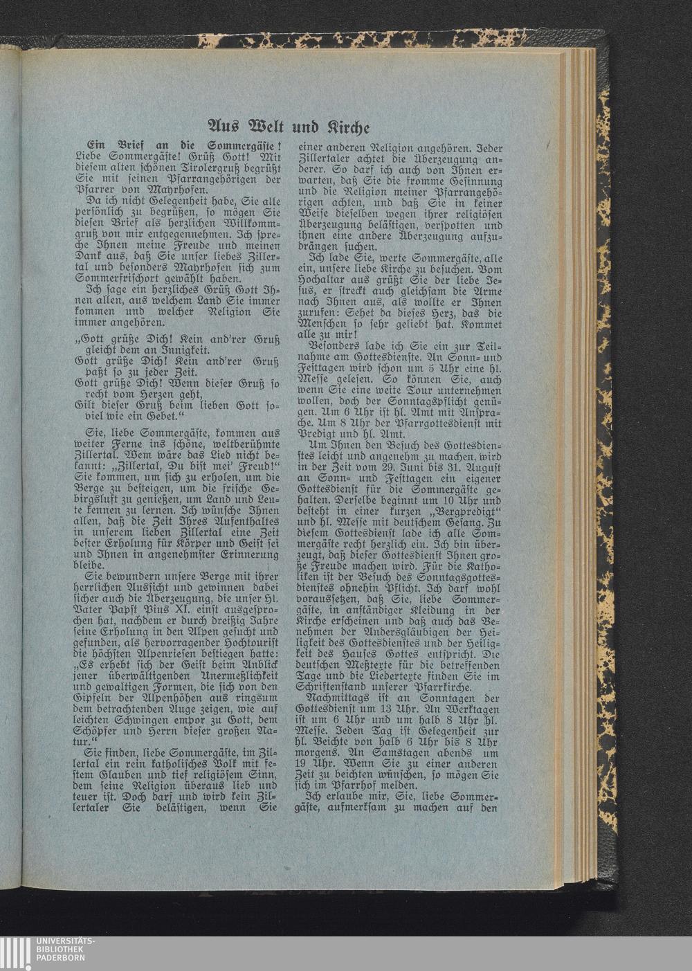 Aus Welt und Kirche