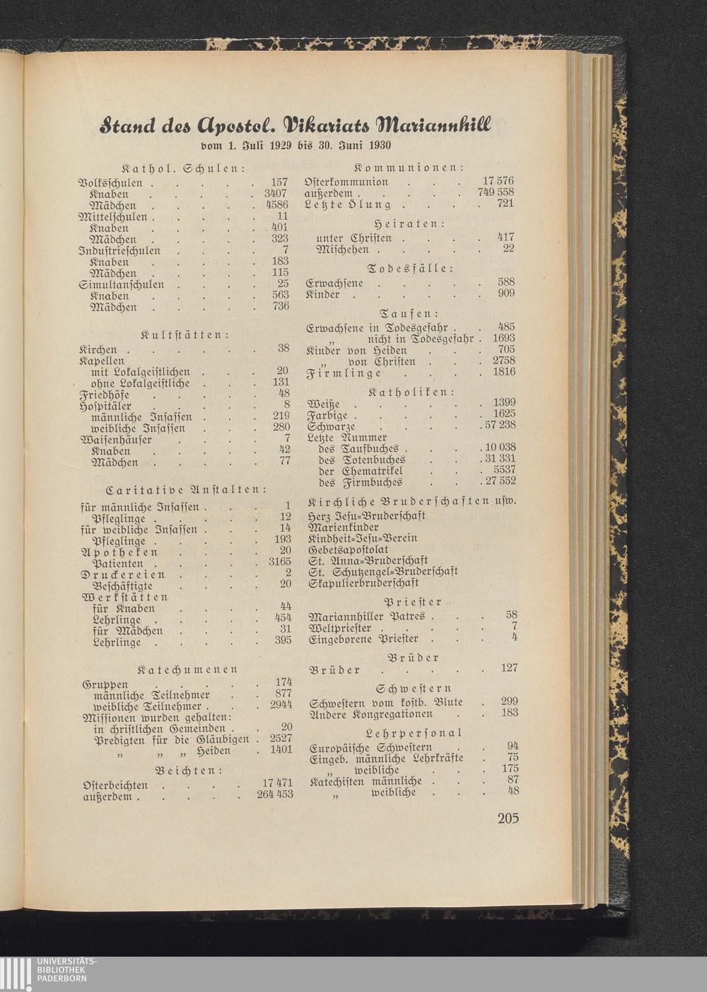 Stand des Apostol. Vikariats Mariannhill vom 1. Juli 1929 bis 30. Juni 1930