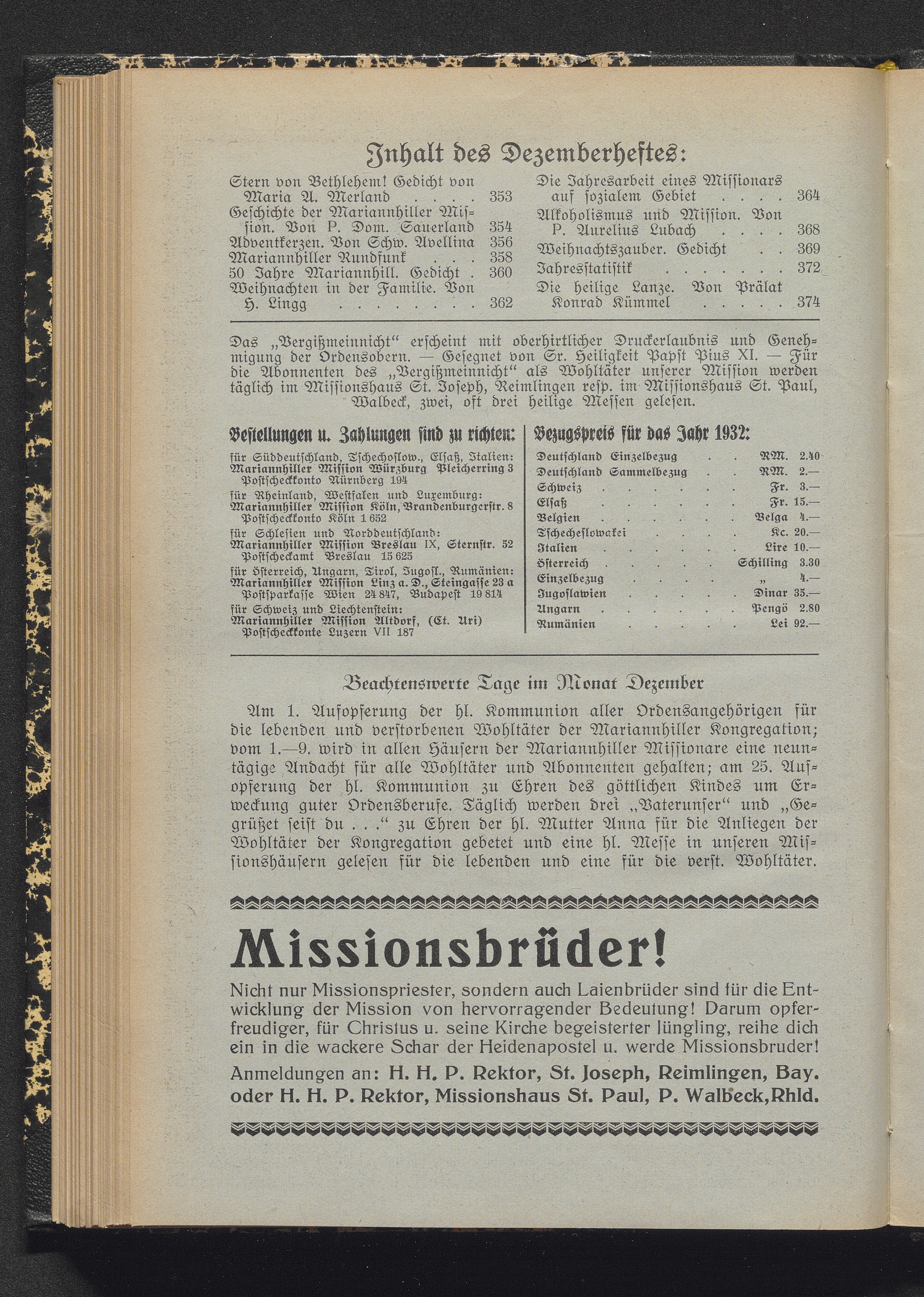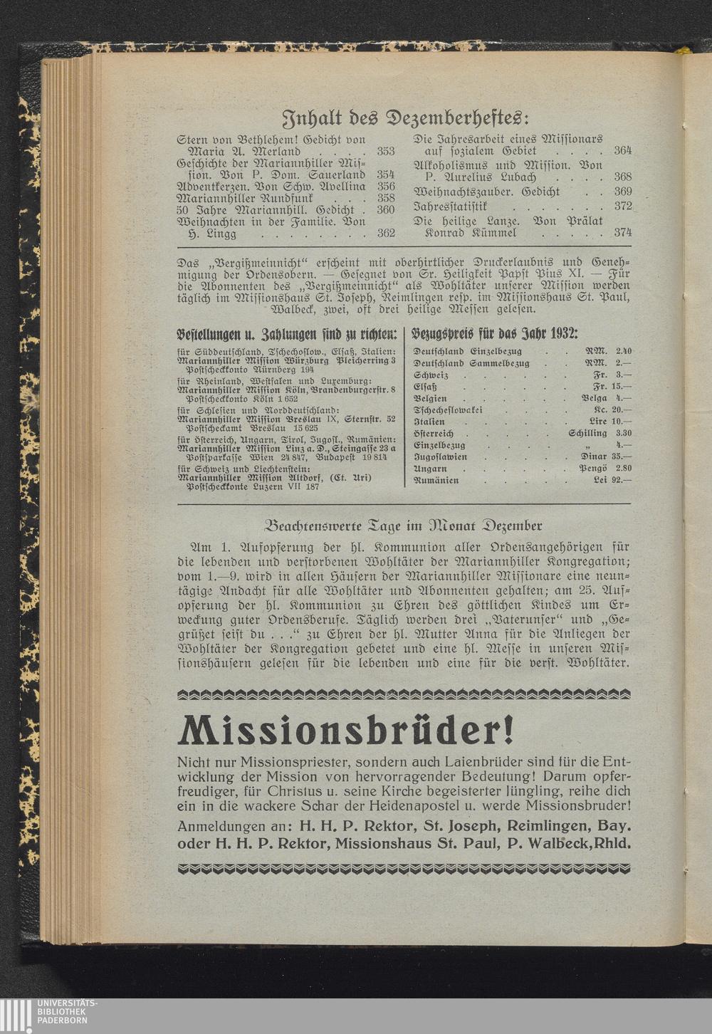 Jnhalt des Dezemberheftes: