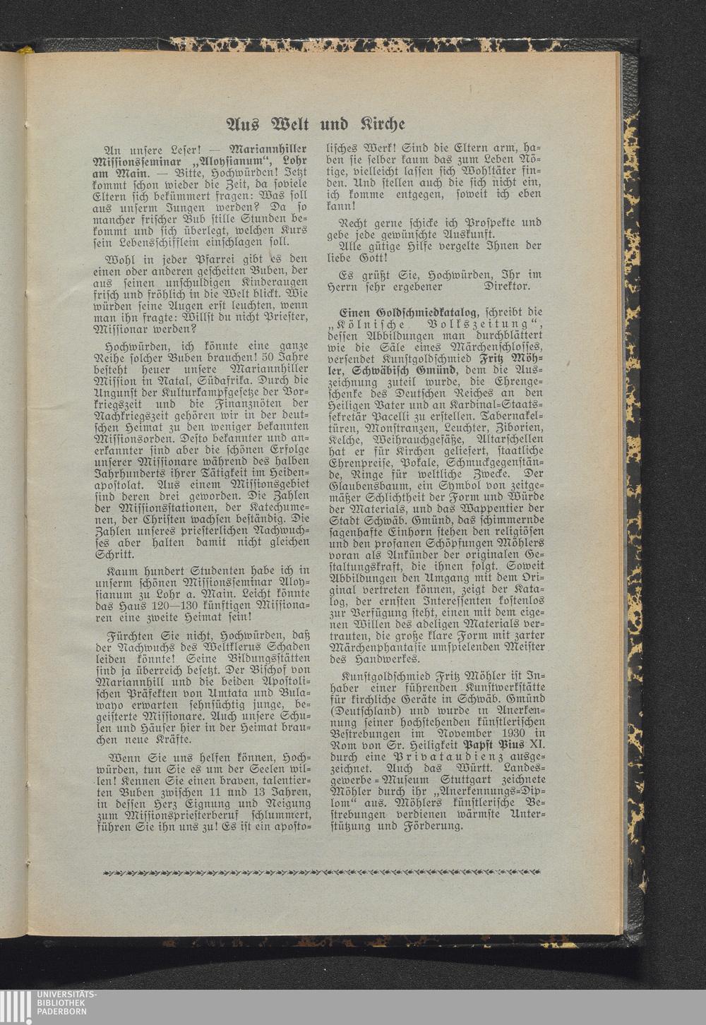 Aus Welt und Kirche