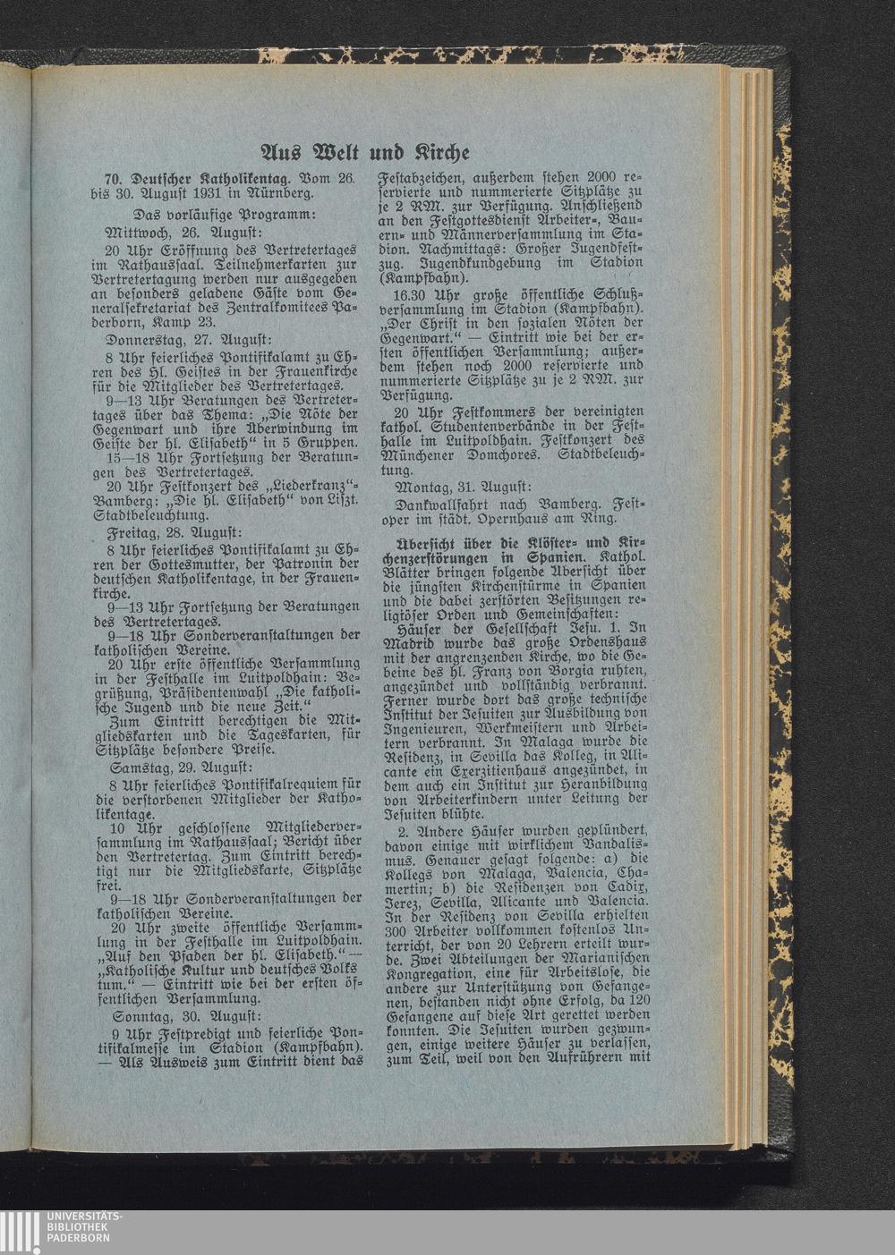 Aus Welt und Kirche