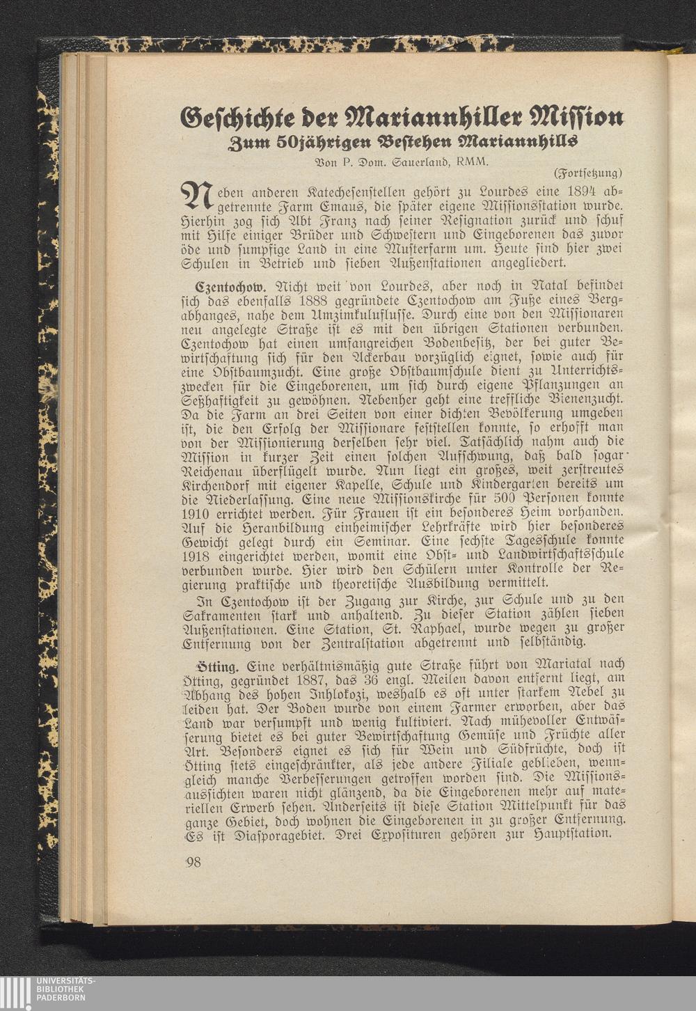 Geschichte der Mariannhiller Mission Zum 50jährigen Bestehen Mariannhills