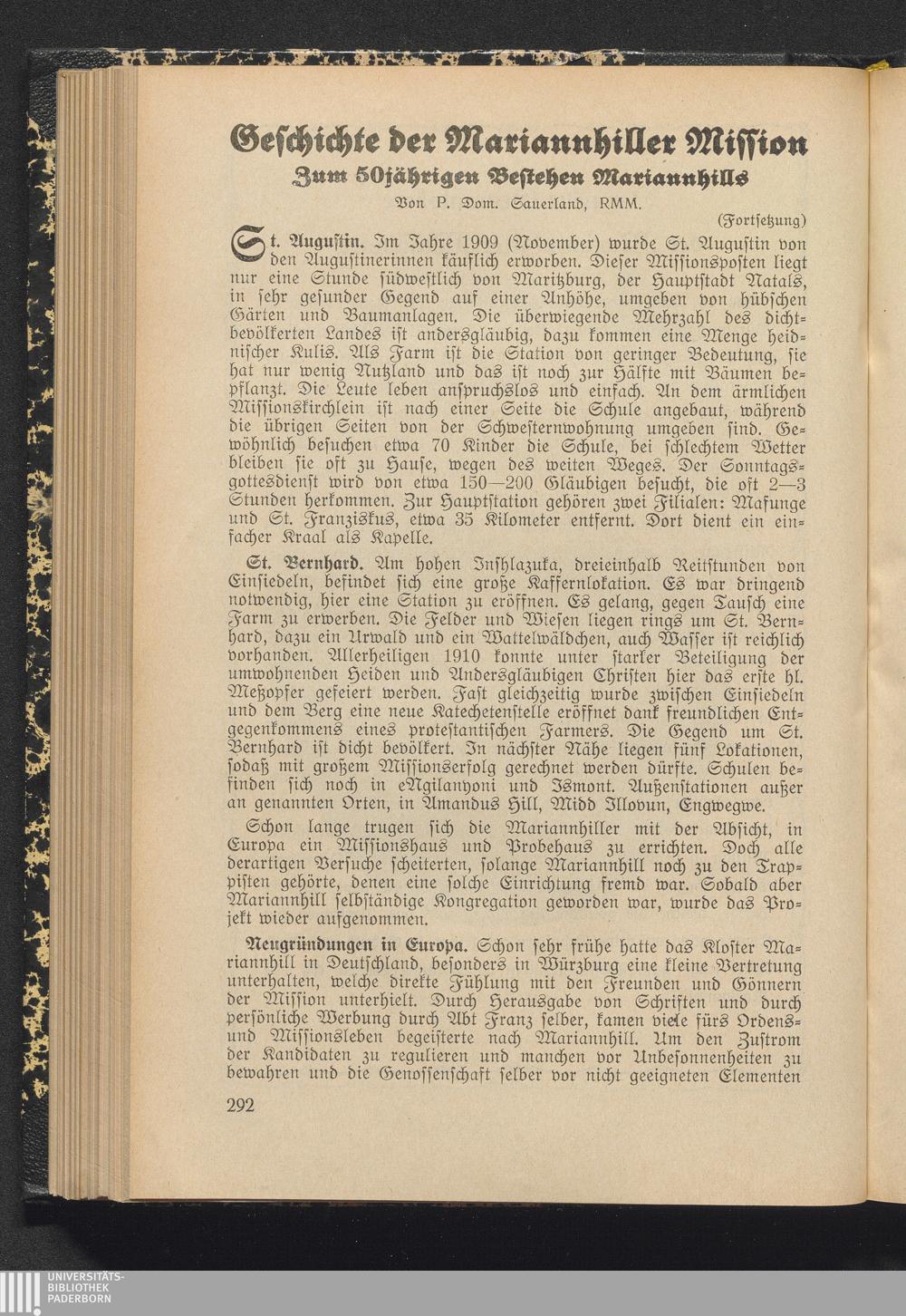 Geschichte der Mariannhiller Mission Zum 50jährigen Bestehen Mariannhills