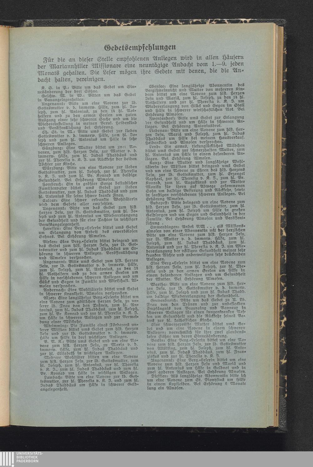 Gebetsempfehlungen