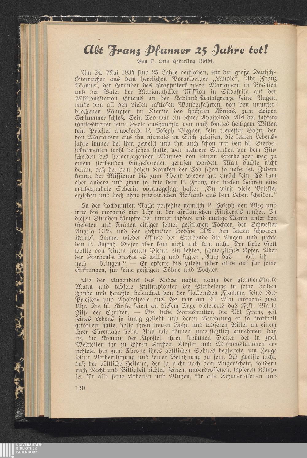 Abt Franz Pfanner 25 Jahre tot!