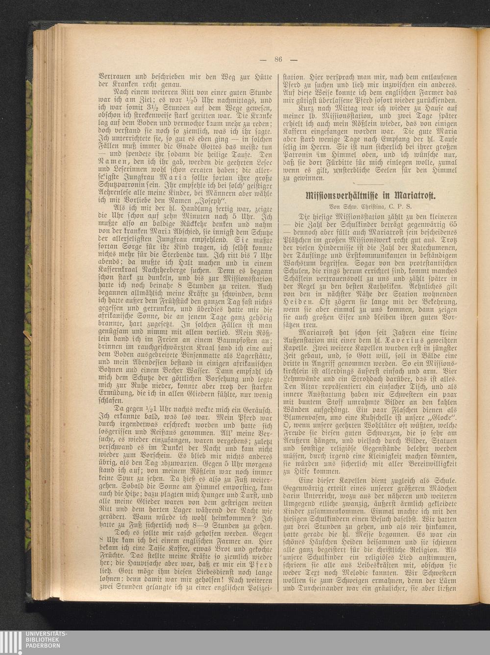 Missionsverhältnisse in Mariatrost.