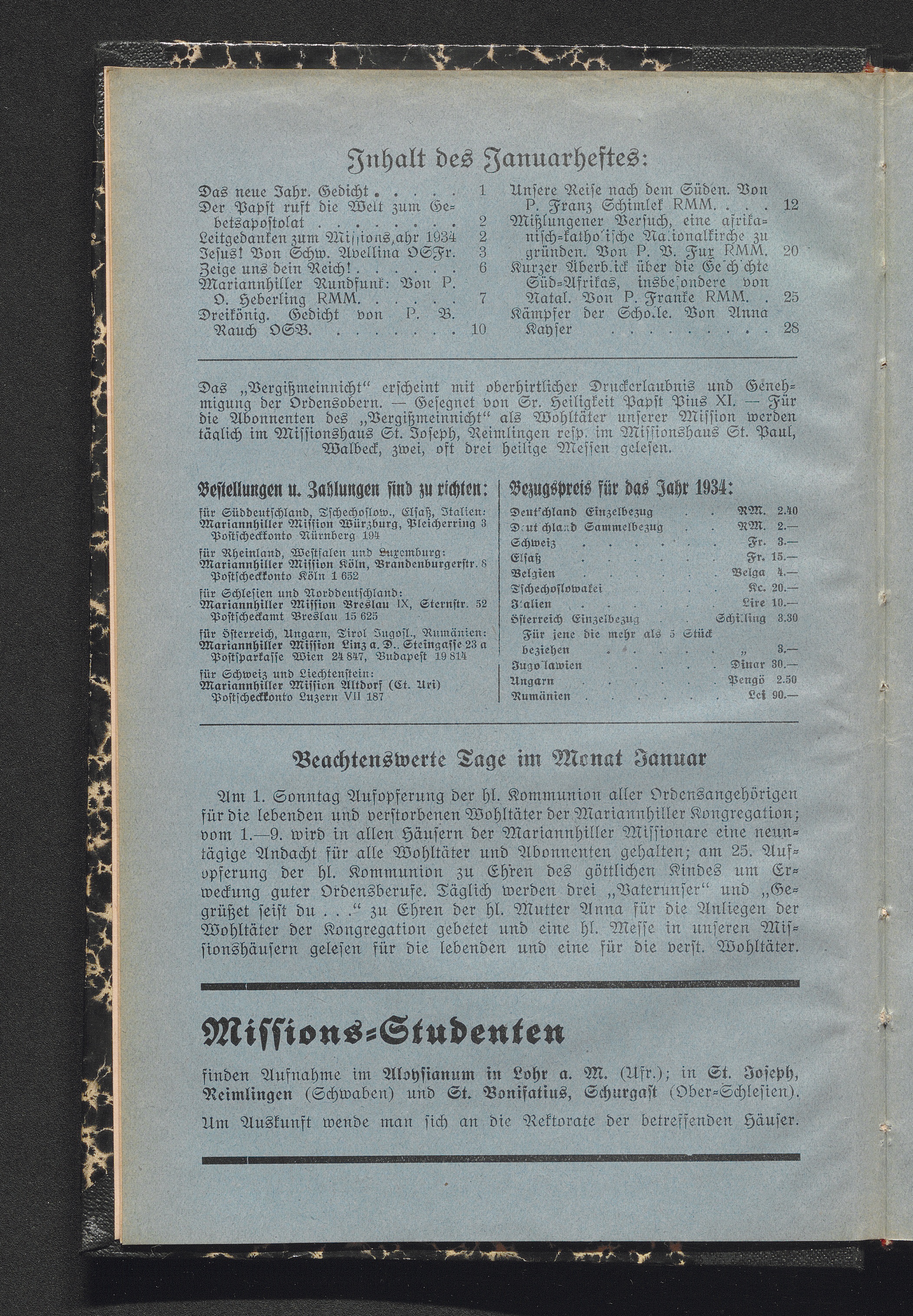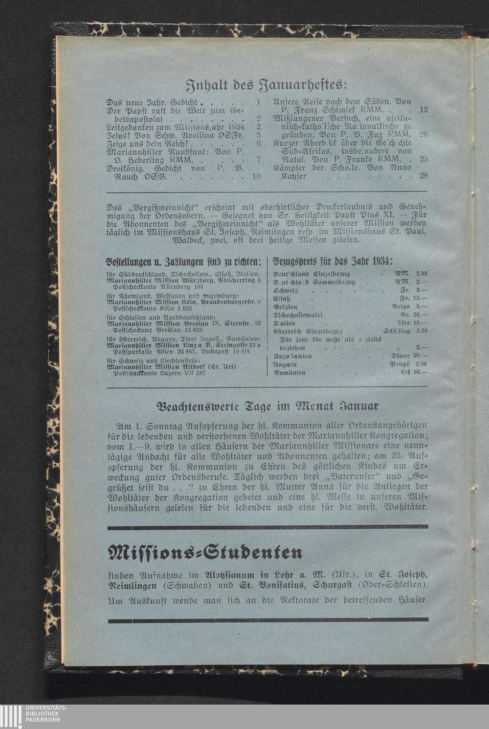 Inhalt des Januarheftes: