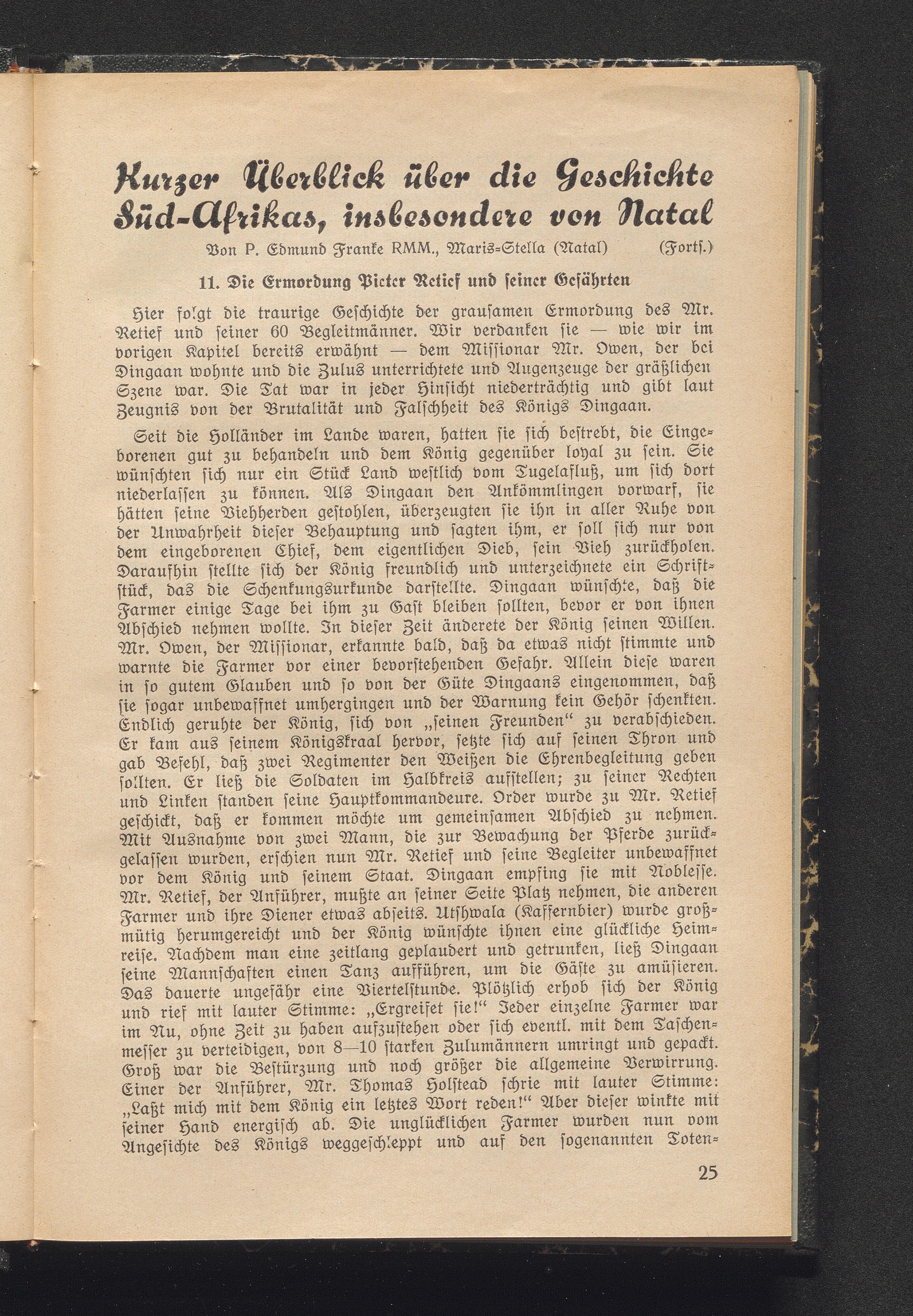 Kurzer Überblick über die Geschichte Süd-Afrikas, insbesondere von Natal