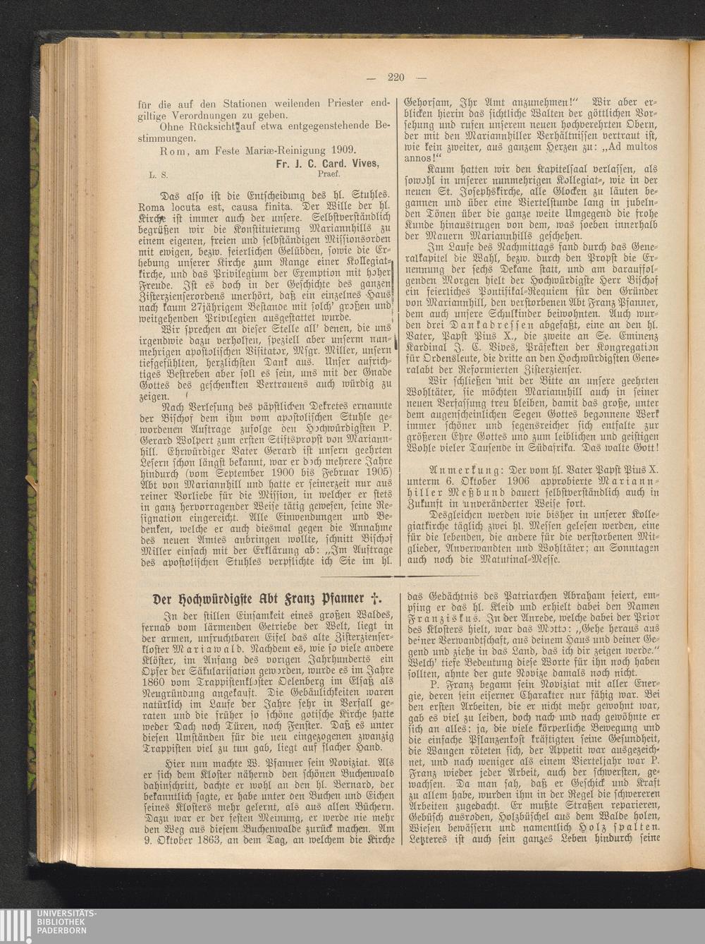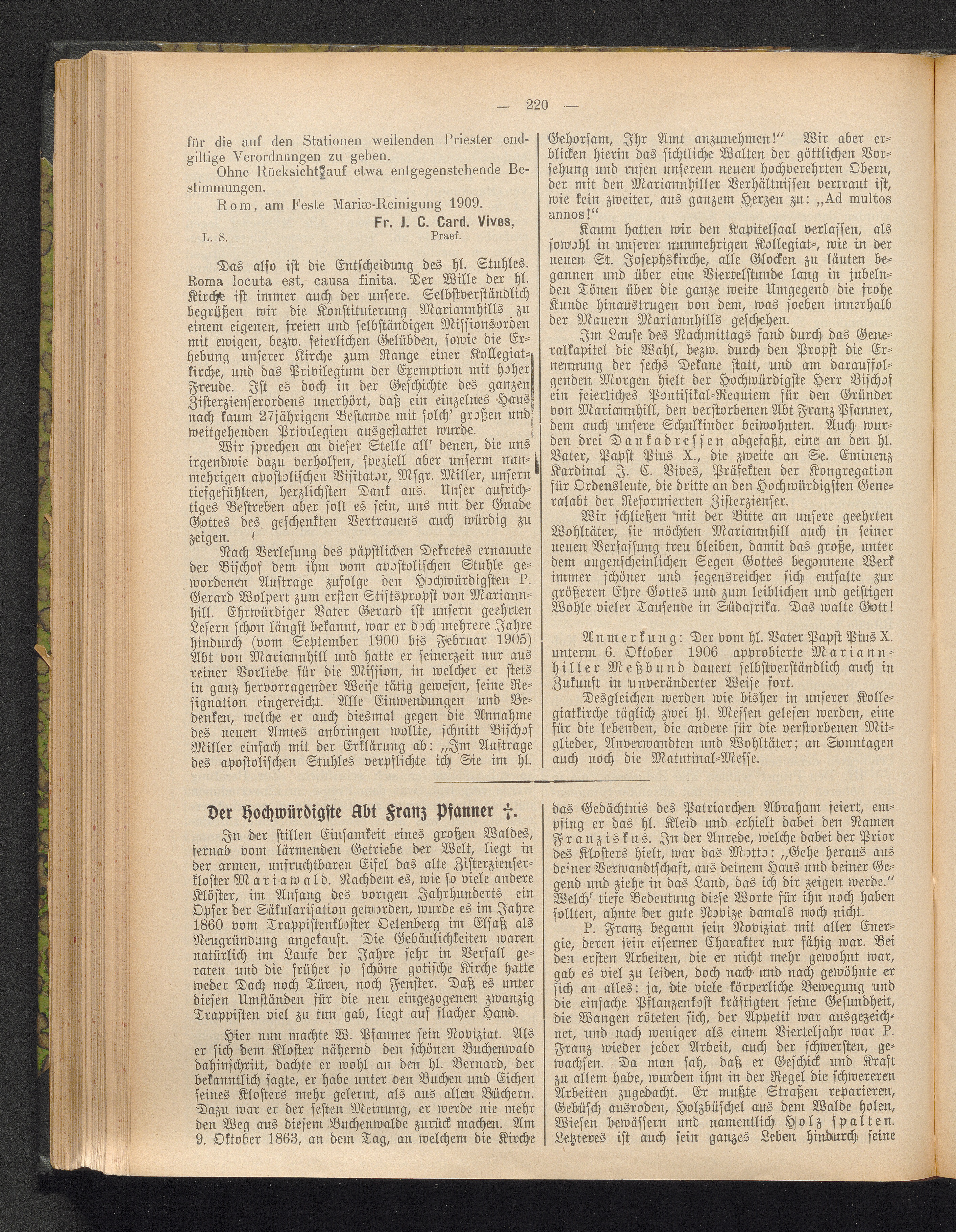Der Hochwürdigste Abt Franz Pfanner †.