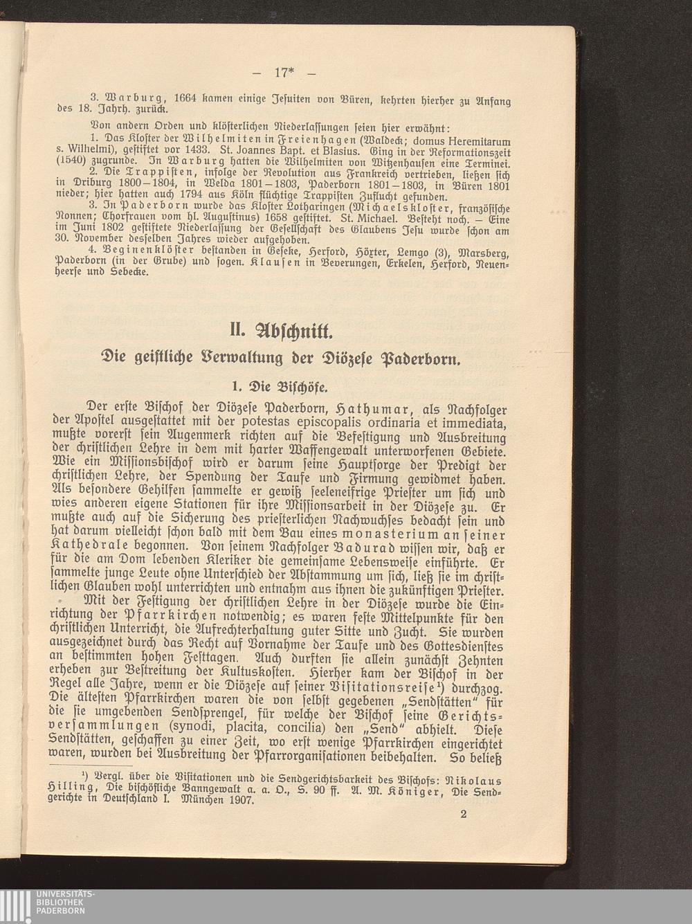 2. Abschnitt. Die geistliche Verwaltung der Diözese Paderborn.